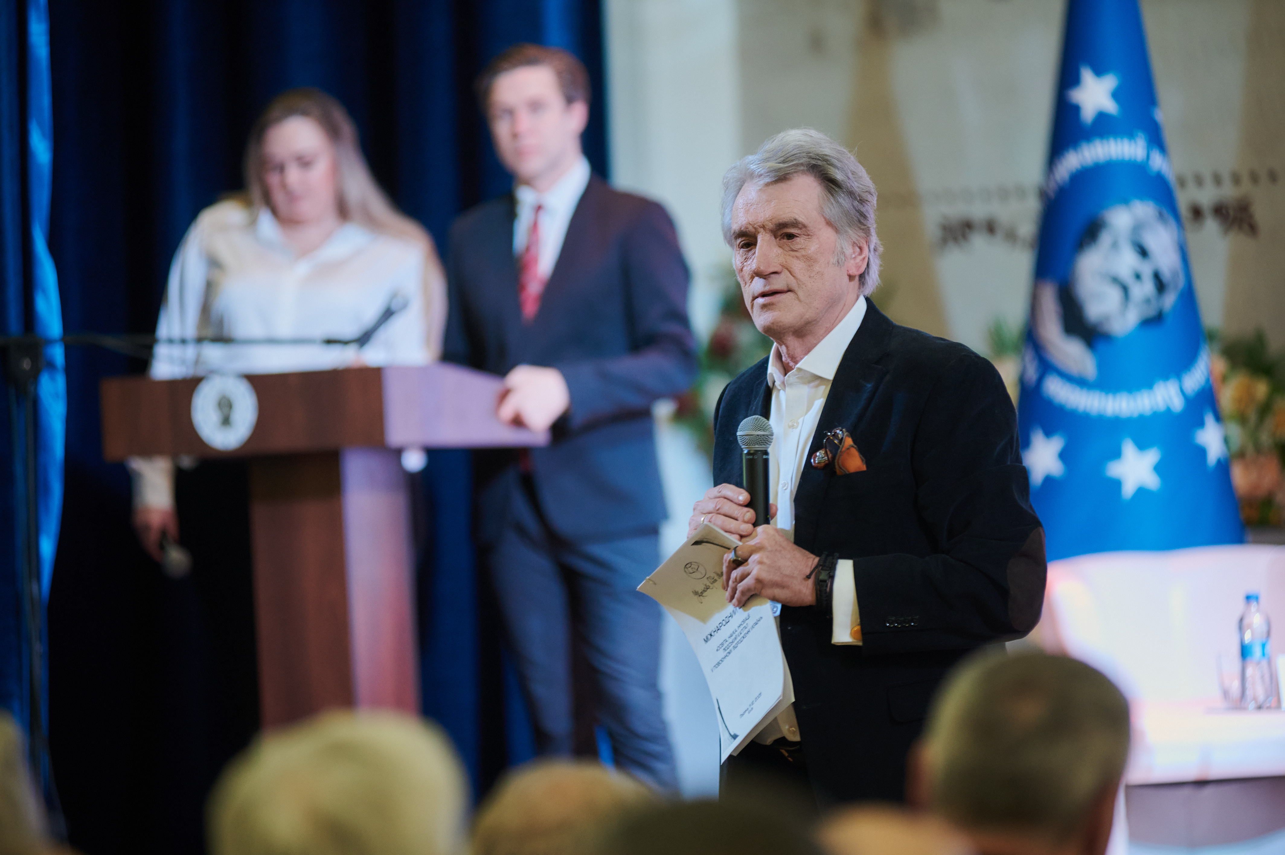 У великій Блакитній залі УДУ вільних місць не видно. Багато молодих обличь. Майбутні спікери, організатори – ближче до сцени, у проходах – мікрофони для запитань із зали.