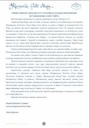За дорученням Президії Ради Миру, в урочистих заходах присвячених встановленню споруди брав участь член Президії Української Ради Миру, Надзвичайний і Повноважний Посол України Цибух В.І., який передав організаторам, учасникам та гостям миротворчого заходу привітання від Першого Президента України, Голови Української Ради Миру Леоніда Кравчука