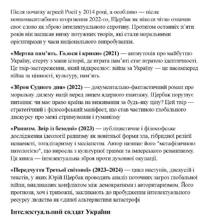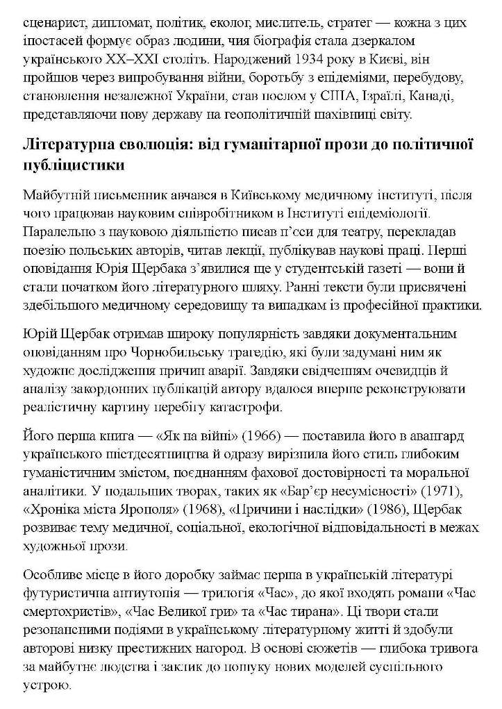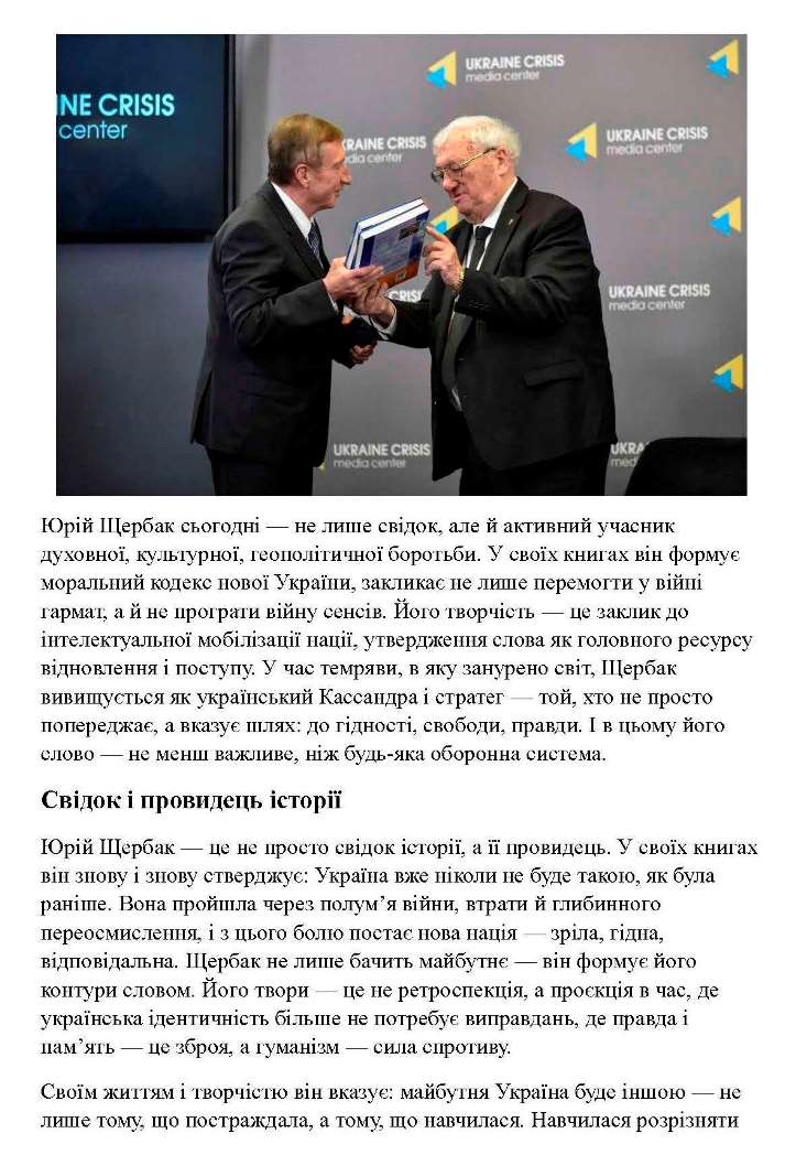Юрій Щербак Пророк доби потрясінь і оборонець гуманітарного фронту України