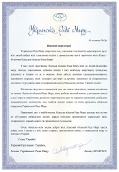 Українська Рада Миру щиро бажає всім людям доброї волі, Одеській обласній Раді Миру щастя, добра, сили і наснаги у всіх ваших справах, примноження внеску в утвердження миру та злагоди в Україні.