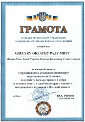 Українська Рада Миру привітала миротворців Одеського регіону з визначною подією у громадсько-суспільному житті Одещини.