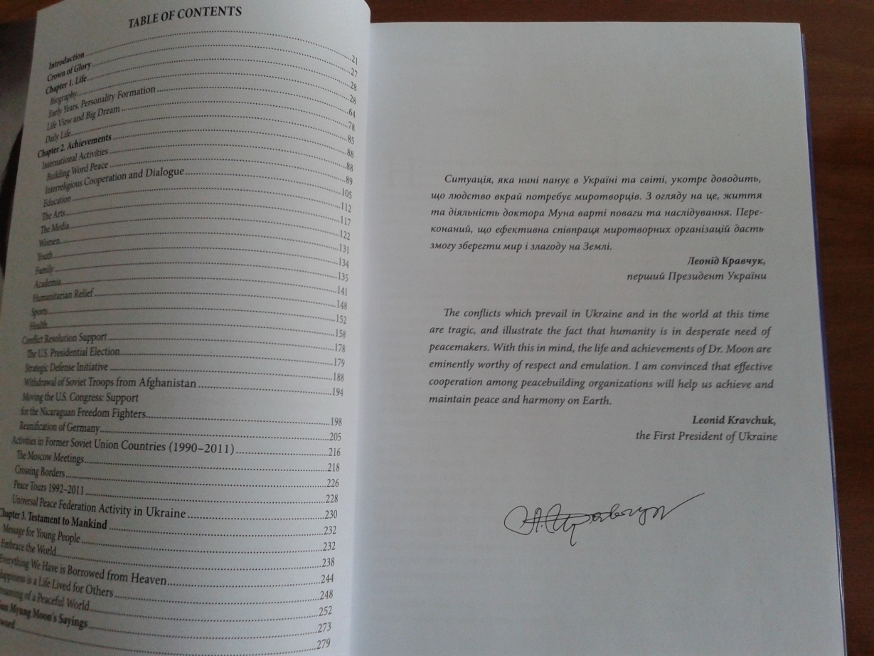 Українська Рада Миру щиро вітає видання книги «Заповіт миру» про життя та діяльність доктора Мун Сон Мьона - видатного громадського діяча, всесвітньо відомого миротворця, засновника низки громадських міжнародних миротворчих організацій по всьому світу.