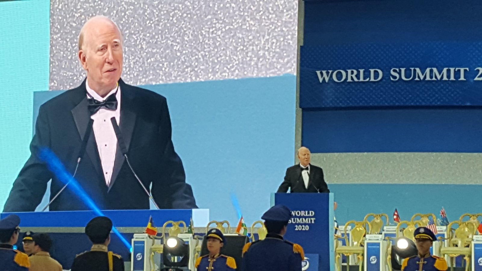 Ньют Гінгріч, спікер Палати представників США (1995-1999 рр.), розповів про те, як згуртовуються спільноти, щоб реагувати на кризи. «Завдяки сучасним технологіям увесь світ дізнався про коронавіруси в Ухані. Як інший приклад, пожежі в Австралії демонструють, що проблеми одного регіону є загальними для всього світу. Американські пожежники в Австралії допомагають боротися з вогнем. Троє з них загинули. Це правильно, що ви зібралися тут, щоб працювати заради миру в усьому світі. Дивно те, що створили разом засновники Федерації на місці розірваної війною Кореї після Другої світової війни і Корейської війни. Будь ласка, зберіть воєдино оптимізм, надію і віру в те, що ми можемо разом поліпшити майбутнє всього людства».